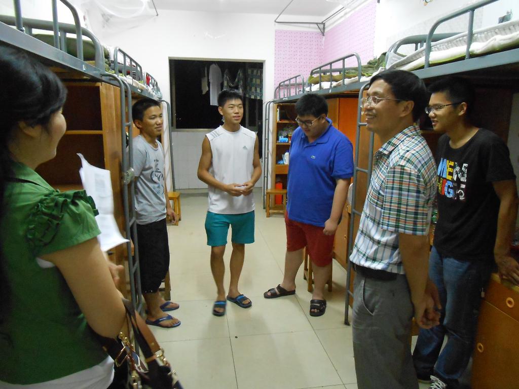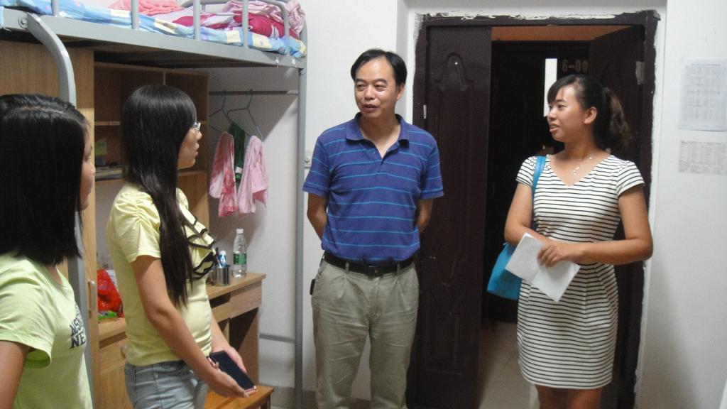 在此次走访过程中,院领导走进每一间新生宿舍,与新同学进行了亲切的交谈。交谈中,院领导从衣、食、住、行等几个方面出发,详细询问了新同学的适应情况,鼓励大家加强同学之间的交流,做好自我心态的调节与适应。在了解了同学们的住宿情况后,院长嘱咐随行的老师做好宿舍配套设施的登记与维修,并做好对应的督促工作。此外,张书记对各个宿舍的人员到位情况进行了核实,对未到校的同学进行了登记。而且,在仔细检查过宿舍物品的情况后后就寝室安全方面提醒新同学要及时地对损坏的物品进行保修,并对损坏的物品进行了登记,让随行的老师尽快落实。