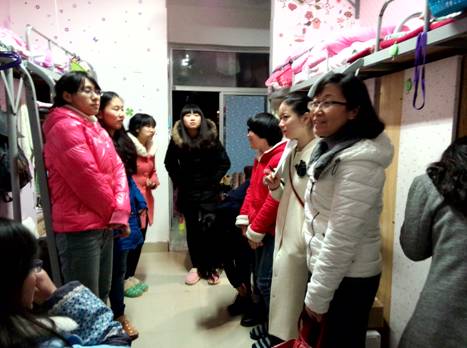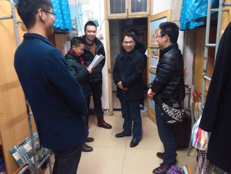 走访过程中,院领导和老师们询问了同学们的假期生活和社会实践情况,并嘱咐同学们尽快将重心转移到学习和校园生活上来,以积极的心态迎接新学期的挑战。在近三个小时时间里,院领导和老师逐一走访了经管院所属782间宿舍,每到一处,老师们都一再嘱咐大家注意防寒保暖,注意用电安全,让同学们在春寒料峭中倍感温暖。