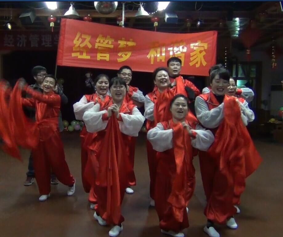 在熠熠灯光的辉映下,晚会充满着温暖祥和的新年气氛。经管人才辈出,凭借广大教职工特有的艺术细胞、表演天赋和不懈努力,整个联欢晚会精彩纷呈,节目形式多样,让人目不暇接。大气磅礴的开场舞《开门红》、欢快活泼的《职场卸博操》、淡雅悠然的《萍聚》对唱、别出心裁的小品《嘻游记》以及各种充满创意的节目层出不穷。演员们用心投入的表演淋漓尽致地展现着经管人创新、进取、敬业的文化氛围和较高的综合素养。