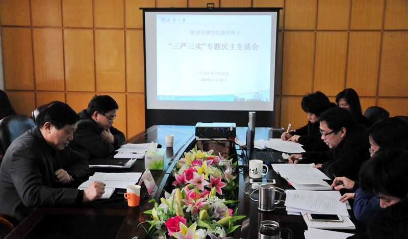 组织部长刘镇江对本次民主生活会进行了点评,他认为经济管理学院党委领导班子专题民主生活会是符合“三严三实”各项要求的民主生活会,整个专题民主生活会体现了以下特点:一是准备工作到位。会前经济管理学院党委书记与班子成员、班子成员相互之间深入开展了谈心谈话。党委领导班子对照检查材料和班子成员个人发言提纲都体现了严实要求,点到了自身存在的问题。二是民主氛围浓厚,班子成员都提了很好的意见建议,开展批评与自我批评有辣味。