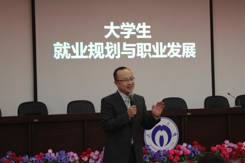 伴随着双选会正如火如荼地进行,为激发同学们对自己未来职业生涯的思考,切实解决同学们对职业规划的疑惑,11月26日下午,我院邀请知名校友、任脉顾问总裁、华润顾问总经理任戈先生在图书馆报告厅举行了以“大学生就业规划与职业发展”为题的讲座。学院老领导任德馨教授出席了本次讲座。讲座由院党委副书记廖迎春老师主持。